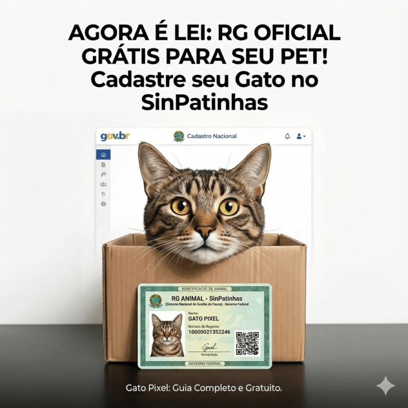 RG para Gatos Grátis: Saiba como fazer a Identidade Oficial do seu Pet pelo Governo Você sabia que agora seu gatinho e cachorrinho pode ter um RG oficial e gratuito válido em todo o Brasil? O Governo Federal lançou o SinPatinhas, um sistema nacional onde você cadastra seu pet e gera uma carteira de identidade […]